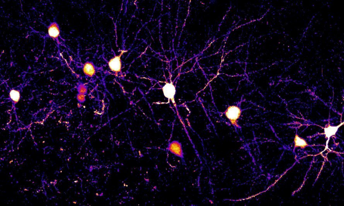 小鼠大脑皮层内有神经元及其分支延伸(称为树突)。图片来源:美国加州大学圣迭戈分校