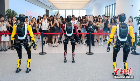 湖北武汉,游客参观人形机器人。